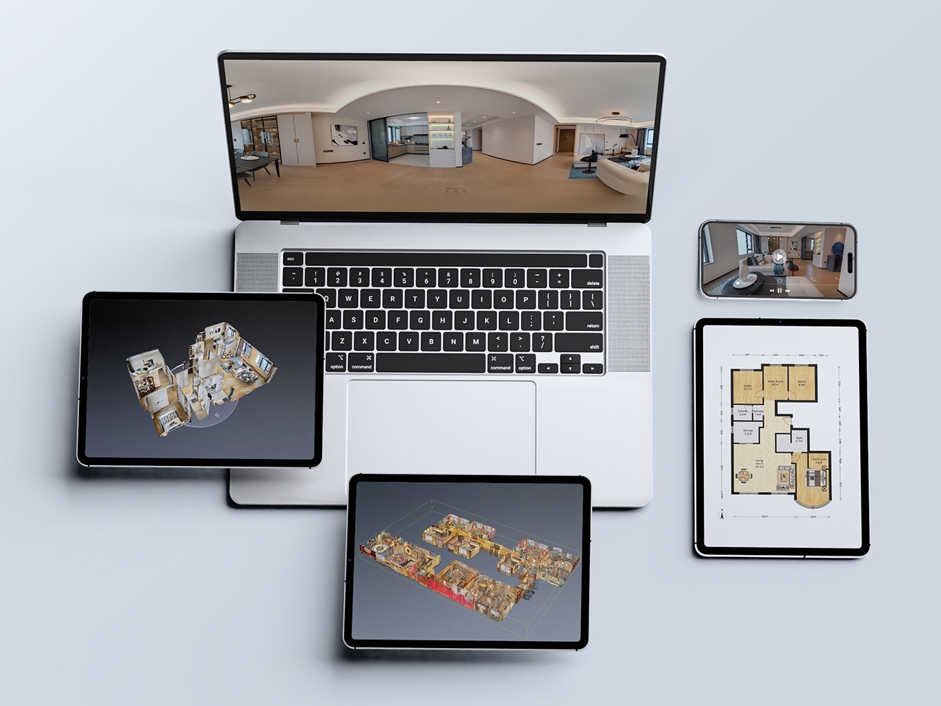 随时随地带客户看房· 经纪人 & 客户同步进入 VR· 支持 1v1 / 1vN 带看· 边走边讲,所见即所得· 空间结构、细节一眼看明白